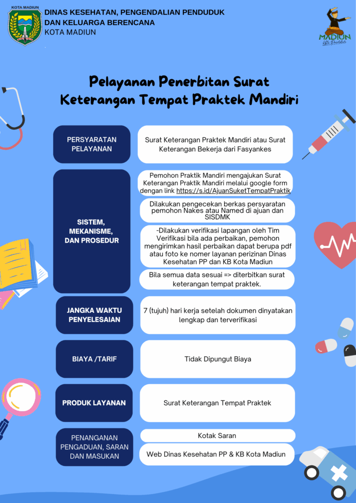 SOP/Produk Hukum SOP Penerbitan Surat Keterangan Tempat Praktek Mandiri dan Pencabutan Posted on 26 Maret 202521 Juli 2025 Author Dinas Kesehatan Komentar Dinonaktifkan pada SOP Penerbitan Surat Keterangan Tempat Praktek Mandiri dan Pencabutan SOP_Penerbitan_Surat_Keterangan_Tempat_Praktek_Mandiri_dan_PencabutanUnduh